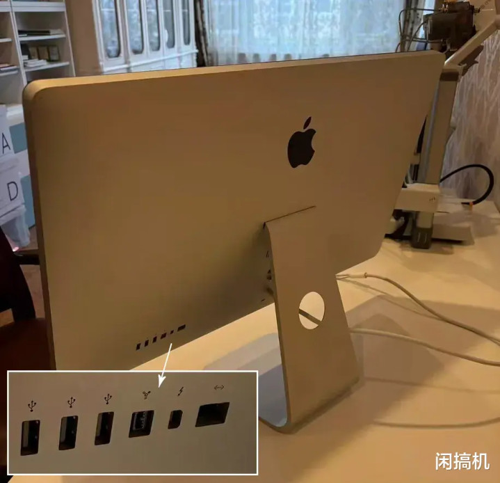 背面设计很简洁,A1408右下方有雷电2接口、FireWire800接口、千兆网口和3个USB 2.0接口,同时显示器内置摄像头、麦克风和2.1扬声器(最高49W),而A1316只有3个USB接口。