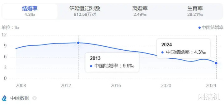 如今随着结婚率下降,很多高端影楼都关门了。我查了数据,2013年国内结婚率是峰值9.9‰,到了2024年骤降到4.3‰,直接腰斩都不止。这就像新生率持续走低,导致民办幼儿园大量关门和房价跌跌不休,没辙。